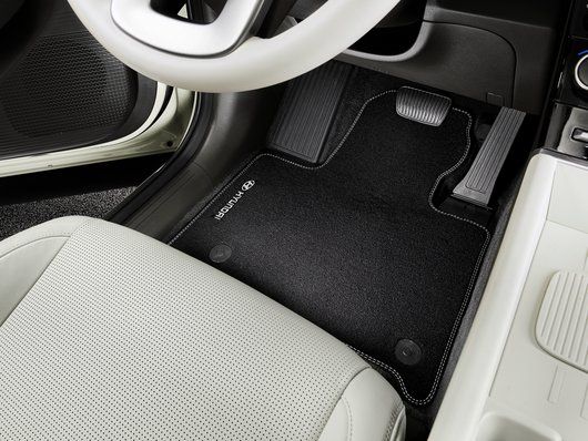 Están hechas a medida para adaptarse perfectamente a los pies y se mantienen en su lugar gracias a los puntos de fijación estándar y el reverso antideslizante. Las alfombrillas de la primera fila llevan bordado el logotipo de Hyundai. Juego de 4.